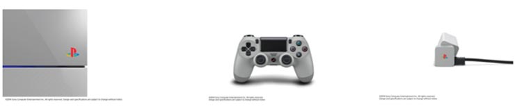 Το σύστημα PlayStation®4(PS4™), το ασύρματο χειριστήριο (DUALSHOCK®4), η PlayStation®Camera, η κάθετη βάση και τα μονοφωνικά ακουστικά θα κυκλοφορήσουν σε γκρι χρώμα (“Original Gray”), μια ειδική απόχρωση που αναπαράγει την αντίστοιχη της πρώτης κονσόλας. Το λογότυπο της οικογένειας του PS βρίσκεται τόσο στο σύστημα PS4, όσο και στο DUALSHOCK®4 και την PlayStation®Camera και αποτελείται από έναν συνδυασμό χρωμάτων που παραπέμπουν στην πρώτη κονσόλα PS.