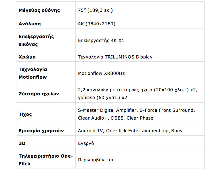 Παράλληλα, ο ισχυρός 4K επεξεργαστής «X1» χαρίζει εντυπωσιακή ποιότητα εικόνων σε ό,τι κι αν προβάλλεται. Κάθε πηγή αναλύεται έξυπνα και αναβαθμίζεται σε σχεδόν 4K ανάλυση, είτε πρόκειται για απλά τηλεοπτικά προγράμματα, Blu-ray Disc, DVD, είτε βίντεο από το Internet. Η μοναδική τεχνολογία «TRILUMINOS Display» της Sony, προσφέρει ένα τεράστιο εύρος χρωμάτων στην οθόνη και προκαλεί έντονα συναισθήματα σε κάθε σκηνή με πλούσια, ζωηρά κόκκινα, πράσινα και μπλε. Η διαφορά είναι ολοφάνερη: η θέαση βιώνεται με φανταστική καθαρότητα, ζωντανά χρώματα και φωτεινή αντίθεση.