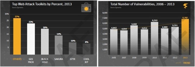 Σύμφωνα με την τελευταία έκθεση «Internet Security Threat Report» της Symantec, υπήρξαν 6.787 ευπάθειες το 2013, σε σύγκριση με 5.291 το 2012. Γεγονός που εγείρει ανησυχία, είναι ότι μια στις οχτώ ιστοσελίδες είχε κρίσιμες, αδιόρθωτες (unpatched) γνωστές ευπάθειες, με το 67% των ιστοσελίδων που χρησιμοποιούνται να διανέμουν κακόβουλο λογισμικό το οποίο εμφανίζεται ως γνήσιο/νόμιμο.