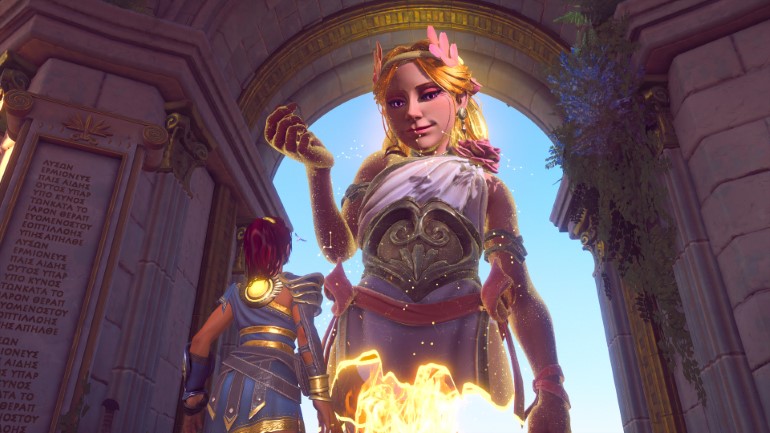 Η ιστορία του Immortals Fenyx Rising δεν διεκδικεί δάφνες πρωτοτυπίας, καθώς το σενάριο του θυμωμένου Τιτάνα που απειλεί να σκοτώσει τους θεούς, ενώ ένας θνητός μπαίνει στην μέση, το έχουμε ξαναδεί αρκετές φορές. Αυτό που το κάνει ενδιαφέρον είναι η αφήγηση του Προμηθέα και του Δία η οποία ακούγεται στο background όσο εσείς εξερευνάτε το νησί. Μπορεί, για παράδειγμα να λύσετε ένα άσχετο με την ιστορία γρίφο και θα ακούσετε τους δυο αφηγητές να τσακώνονται για το αν αυτό που κάνατε ήταν υψίστης σημασίας ή όχι. Ο Δίας είναι απολαυστικός και αντιμετωπίζει όλες τις καταστάσεις με χιούμορ και χαμηλού επίπεδου αστεία, ενώ ο Προμηθέας προσπαθεί να κρατήσει ένα πιο σοβαρό προφίλ. Η επιλογή να υπάρχει αφήγηση σε πολλά σημεία του παιχνιδιού και ειδικά από δυο τόσους διαφορετικούς αφηγητές, είναι εξαιρετική.