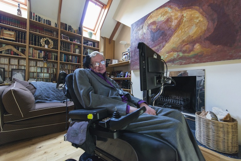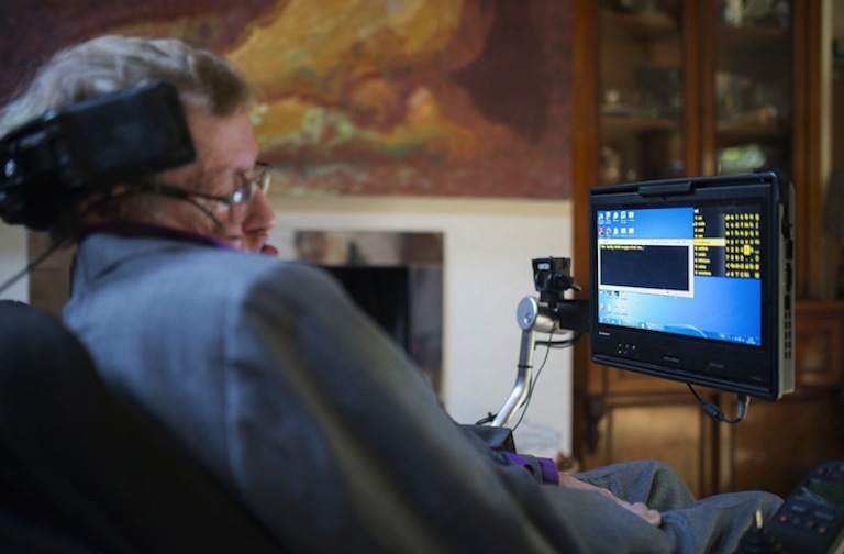 Ο Stephen Hawking πάσχει από τη νόσο κινητικού νευρώνα που σχετίζεται με αμυοτροφική πλευρική σκλήρυνση (ALS), μια κατάσταση που έχει επιδεινωθεί κατά τη διάρκεια των χρόνων, με αποτέλεσμα να έχει παραλύσει σχεδόν εντελώς και επικοινωνεί μέσω της τεχνολογίας.