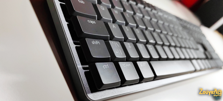 Στην Ελλάδα κυκλοφορεί η έκδοση «Απτικός Αθόρυβος» με διακόπτες που παράγουν ένα πολύ εύηχο χτύπημα. Το θέμα με τα μηχανικά πληκτρολόγια είναι ότι σαφώς προσφέρουν μεγαλύτερη άνεση, όμως ίσως δεν είναι για όλα τα γούστα… Για πολύωρη χρήση σε γραφείο όμως, οι διακόπτες των μηχανικών πληκτρολογίων προσφέρουν μοναδική αίσθηση και ευκολία στην πληκτρολόγηση, που δεν μπορεί να προσφέρει άλλος τύπος πληκτρολογίου. Το MX Mechanical χάρη στο αρκετά μικρό ύψος των πλήκτρων είναι εξαιρετικά άνετο, οι διακόπτες έχουν πολύ σταθερή θέση και παράλληλα, η ματ επιφάνειά τους βοηθά στην εύκολη πλοήγηση των δακτύλων.