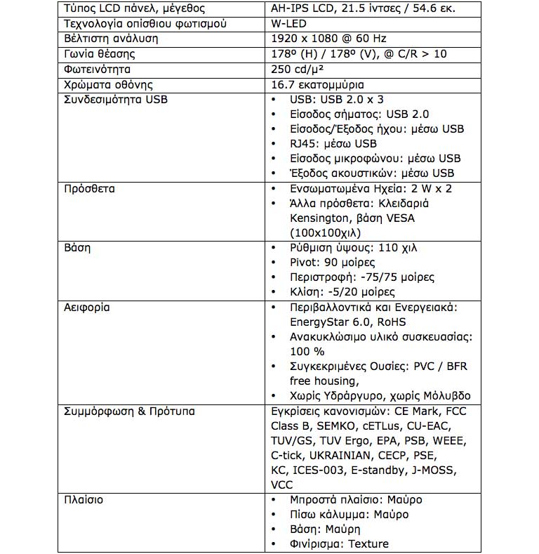 Τεχνικές Χαρακτηριστικά – Προδιαγραφές