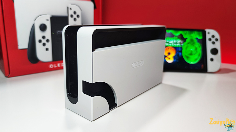 Τέλος, έχουμε ανασχεδιασμό των ηχείων, που αποδίδουν πιο δυνατά και ελαφρώς πιο καθαρά, αλλά και μια θύρα LAN, που έχει μπει στη θέση της τρίτης USB, στο πίσω μέρος του dock και απευθύνεται σε όσους έχουν ασταθές σήμα Wi-Fi. Το dock έχει και αυτό ελαφρώς διαφορετικό σχεδιασμό, με κυρτές άκρες και καπάκι που αφαιρείται εντελώς στο πίσω μέρος. Αξίζει να αναφέρουμε ότι και η θύρα HDMI πλέον είναι 2.0, αντί για 1.4, κάτι που όμως δεν επηρεάζει ιδιαίτερα, αφού τα παιχνίδια του Switch και οι εφαρμογές παίζουν με maximum 1080p.