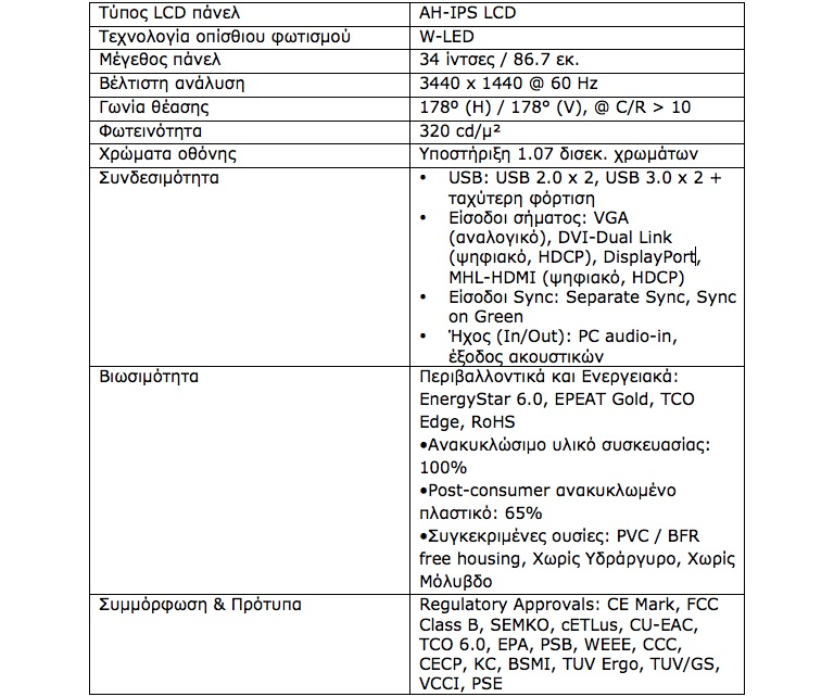 Η νέα οθόνη της Philips χρησιμοποιεί προηγμένο AH-IPS LED panel, που διατηρεί φωτεινά και ακριβή τα χρώματα, ακόμα και σε γωνία θέασης 178 μοιρών. Χάρη στις 34 ίντσες της, η νέα BDM3470UP παρέχει άφθονο χώρο στους χρήστες για να ξεδιπλώσουν τις λαμπρότερες ιδέες τους, ενώ η πανοραμική θέαση 21:9 προσφέρει χώρο για την προβολή πολλαπλών παραθύρων, ιδανικό χαρακτηριστικό για την ταυτόχρονο χρήση διάφορων προγραμμάτων / εφαρμογών. Παράλληλα, η ευκρινέστατη CrystalClear Quad HD ανάλυση των 3440×1440 γραμμών, επιτρέπει τη μεγέθυνση κάθε λεπτομέρειας με απαράμιλλη καθαρότητα. Για ακόμα μεγαλύτερη φωτεινότητα και πιστότητα χρωμάτων, η νέα οθόνη διαθέτει τη λειτουργία Philips SmartUniformity, η οποία με ειδικούς μετρητές για την εκτίμηση της χρωματικής ακρίβειας, είναι ρυθμισμένη ώστε να διατηρεί τουλάχιστον 95% κατά μέσο όρο την ομοιομορφία της φωτεινότητας.