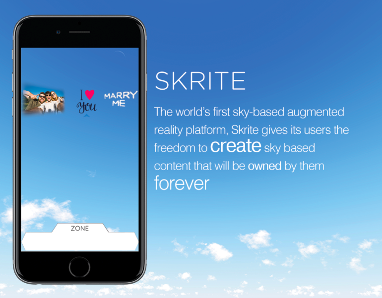 Η νέα εφαρμογή Skrite δίνει τη δυνατότητα στους χρήστες να γράφουν εικονικά κείμενα ή να αναρτούν φωτογραφίες και σκίτσα στον ουρανό σε πραγματικό χρόνο – χωρίς να χρειάζονται τις παραμικρές γνώσεις προγραμματισμού γι’ αυτό. Όποιος άλλος έχει εγκαταστήσει την ίδια εφαρμογή, μπορεί να σηκώσει ψηλά το «έξυπνο» κινητό τηλέφωνό του και να δει τι έχουν αφήσει οι άλλοι στον ουρανό προς κοινή θέα.
