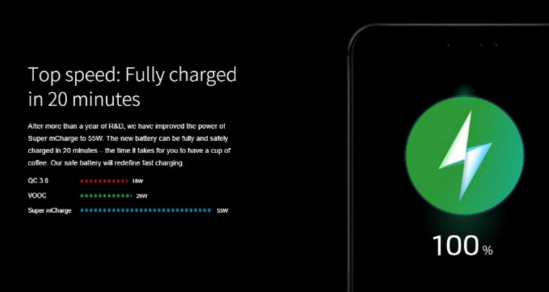 Χρησιμοποιώντας ένα αναβαθμισμένο καλώδιο δεδομένων και έξυπνη αρχιτεκτονική, η Meizu ανέφερε ότι η νέα τεχνολογία είναι ικανή να φορτίσει πλήρως τη μπαταρία ενός τηλεφώνου μέσα σε μόλις 20 λεπτά.
