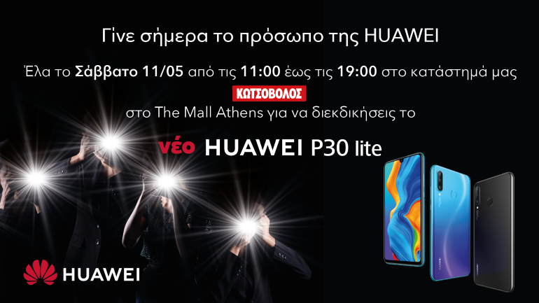 Με αφορμή το λανσάρισμα του νέου Huawei P30 LITE, μία fun δράση σας προσκαλεί να φωτογραφηθείτε με το νέο smartphone, να γίνετε μέλος του φωτογραφικού κολάζ της Huawei που θα κοσμεί τη βιτρίνα του καταστήματος και να διεκδικήσετε ένα Huawei P30 LITE.