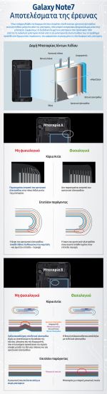 Εκτός από τη δική μας έρευνα για τα περιστατικά αυτά, προσλάβαμε επίσης ανεξάρτητους οργανισμούς εμπειρογνωμόνων του κλάδου, συμπεριλαμβανομένης της UL, της Exponent και της TUV Rheinland, για να παρέχουν αντικειμενική και αμερόληπτη ανάλυση. Η έρευνα μας, καθώς και οι έρευνες που ολοκληρώθηκαν από τους τρεις ανεξάρτητους οργανισμούς του κλάδου, κατέληξαν στο συμπέρασμα ότι οι μπαταρίες ήταν η αιτία σχετικά με τα περιστατικά του Note 7. Παρόλα αυτά, εμείς θέσαμε τον στόχο για τις προδιαγραφές της μπαταρίας του καινοτόμου Note 7 και εμείς αναλαμβάνουμε την ευθύνη για την αποτυχία μας να εντοπίσουμε και να ελέγξουμε τα θέματα που προέκυπταν από τον σχεδιασμό της μπαταρίας και από τη διαδικασία κατασκευής πριν από την κυκλοφορία του Note 7.