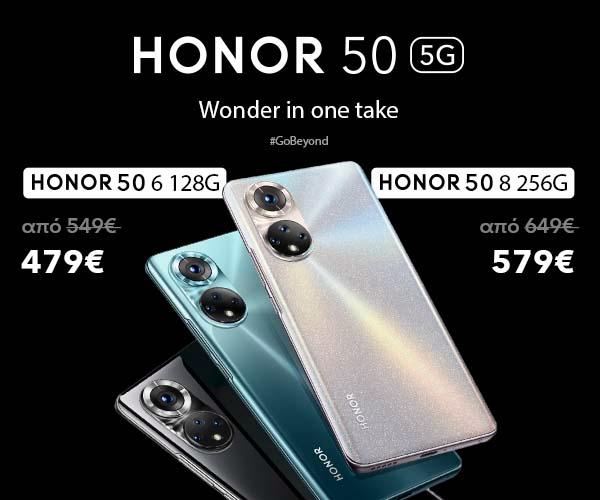 To HONOR 50 5G που μόλις κυκλοφόρησε εγκαινιάζει την Black Friday και βγαίνει σε τιμή 479 Ευρώ από 549 Ευρώ (η έκδοση 6RAM – 128GB) και 579 Ευρώ από 649 Ευρώ η έκδοση 8 RAM – 256GB.