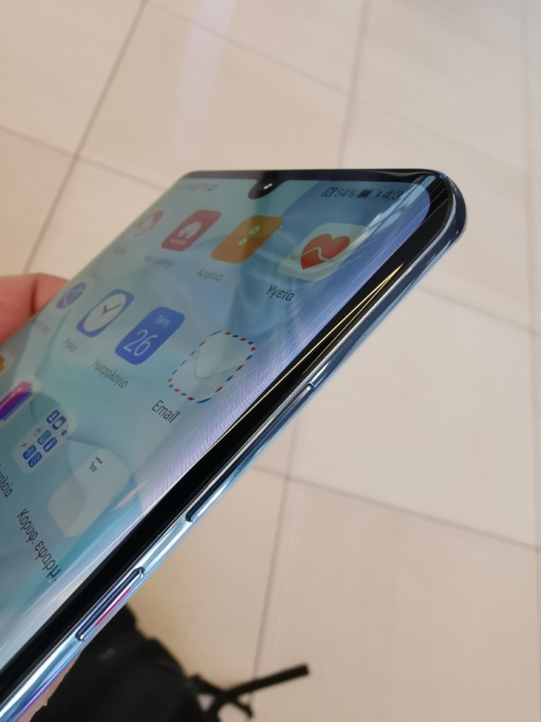 Το μπροστινό μέρος του P30 Pro έχει αλλάξει ιδιαίτερα σε σχέση με το P20 και πλέον έχουμε κυρτή AMOLED οθόνη στις 6,47 ίντσες με ανάλυση FullHD+ και αισθητήρα αποτυπωμάτων κάτω από την οθόνη, που είναι μάλιστα ο ταχύτερος που έχουμε δει ως τώρα, όπως υποστηρίζει η εταιρεία.