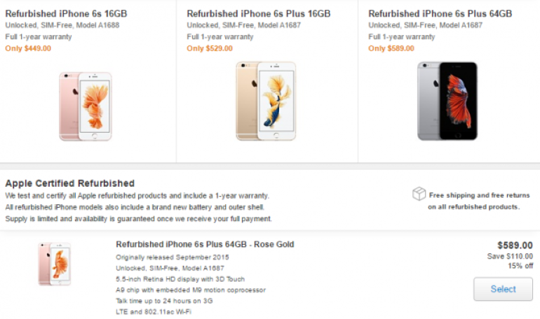 Oι τιμές σε αυτά τα μοντέλα είναι μειωμένες κατά 15%, σε σύγκριση με τα νέα. Για παράδειγμα, ένα refurbished rose gold iPhone 6S Plus στα 64GB έχει βγει σε πώληση έναντι 589 δολαρίων, ενώ ένα ασημί 16GB iPhone 6S έναντι 539 δολαρίων.