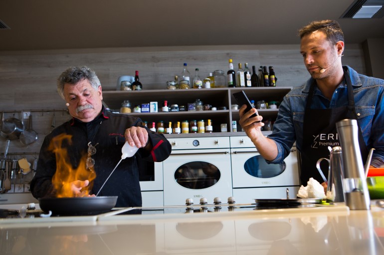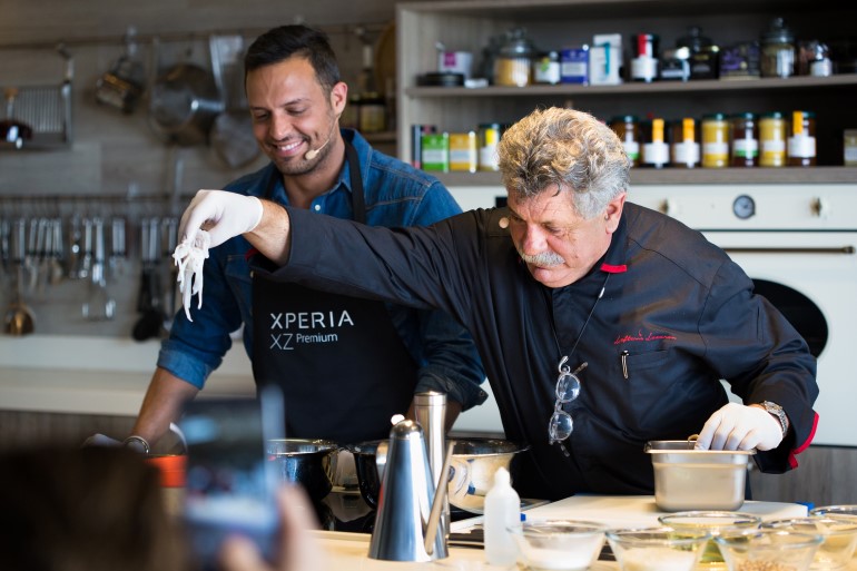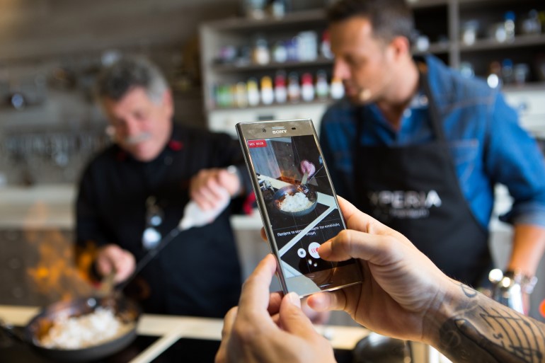Εκτός από τις παρουσιάσεις, ο κ. Στέλιος Χαραλαμπάκης, εμπορικός διευθυντής της Sony Mobile Ελλάδος, μας μίλησε με μεγάλη ικανοποίηση για τα νέα μοντέλα Xperia της Sony, αλλά και μας γνώρισε στον… Σεφ του χώρου που βρισκόμασταν, ο οποίος μαγείρεψε μάλιστα κατά τη διάρκεια της παρουσίασης! Ο διεθνούς φήμης Σεφ Λαζάρου με βοηθό τον γνωστό παρουσιαστή Σάββα Πούμπουρα μαγείρεψαν και οι κάμερες των Xperia XZ Premium μαγνητοσκοπούσαν στα 960fps, ώστε να μπορέσουμε στη συνέχεια να θαυμάσουμε τις ικανότητες του Σεφ σε αργή κίνηση!