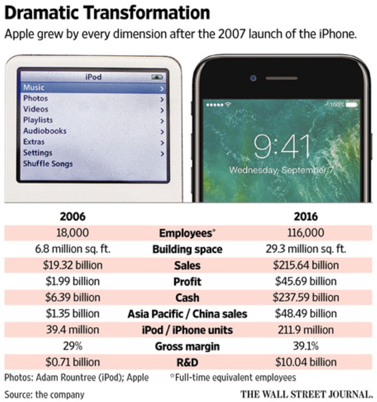 Στο ίδιο άρθρο έχουμε και ακόμη μία πολύ ενδιαφέρουσα σύγκριση, αυτή της εταιρείας (πριν την κυκλοφορία του iPhone) με την Apple του σήμερα: