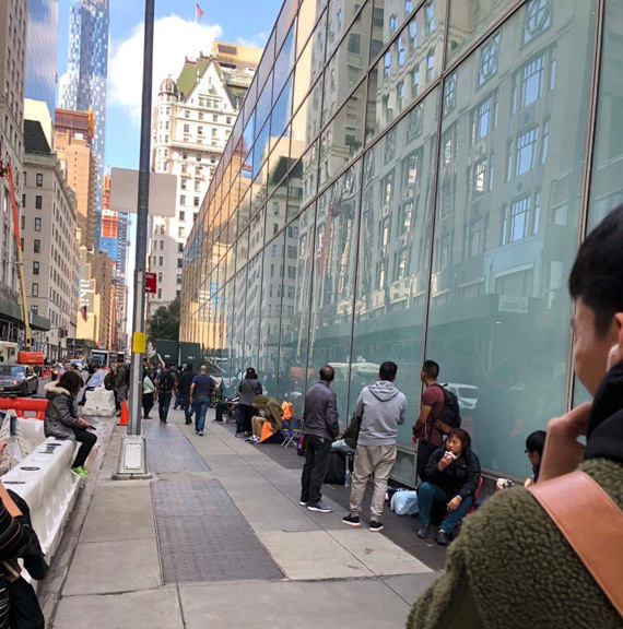 Με ψυγειάκια και σκηνές έχει σχηματιστεί ουρά 100 μέτρων όπως αναφέρει το Techblog. Στο επίσημο site της Apple και συγκεκριμένα του καταστήματος της 5th Avenue διαβάζουμε ότι την Παρασκευή 3 Νοεμβρίου θα ανοίξει τις πόρτες του στις 8 το πρωί και θα μείνει ανοιχτό έως τις 12 τα μεσάνυχτα της ίδιας μέρας λογικά για να εξυπηρετήσει τον κόσμο.