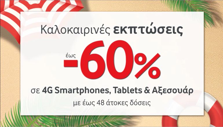 Αυτό το καλοκαίρι η Vodafone δίνει τη δυνατότητα σε όλους να αποκτήσουν τα αγαπημένα τους σε 4G Smartphones, Tablet και Αξεσουάρ με Εκπτώσεις έως -60%.