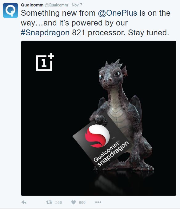 Μέσα από το Twitter η Qualcomm έρχεται να επιβεβαιώσει ότι η OnePlus ετοιμάζεται για την ανακοίνωση νέου smartphone. Δεν αναφέρει ποιο θα είναι το smartphone, αλλά επισημαίνει ότι θα φορά τετραπύρηνο επεξεργαστή Snapdragon 821.