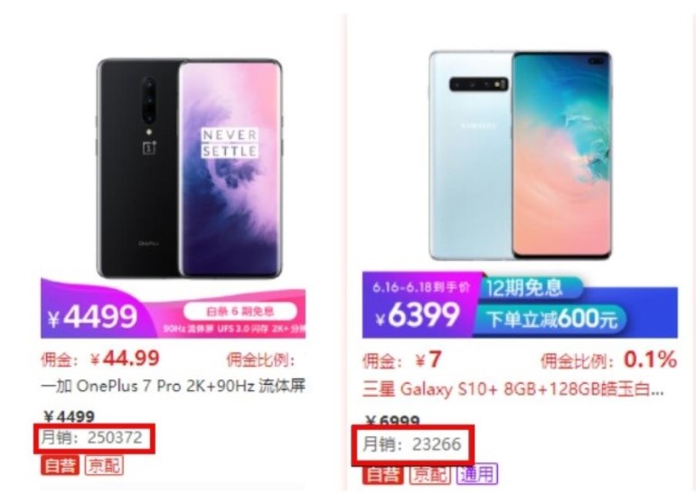 Σύμφωνα με τα στοιχεία του διαδικτυακού καταστήματος λιανικής, JD.com, το OnePlus έφτασε τις 250.372 πωλήσεις, ενώ το μοντέλο της Samsung μόλις τις 23.266.