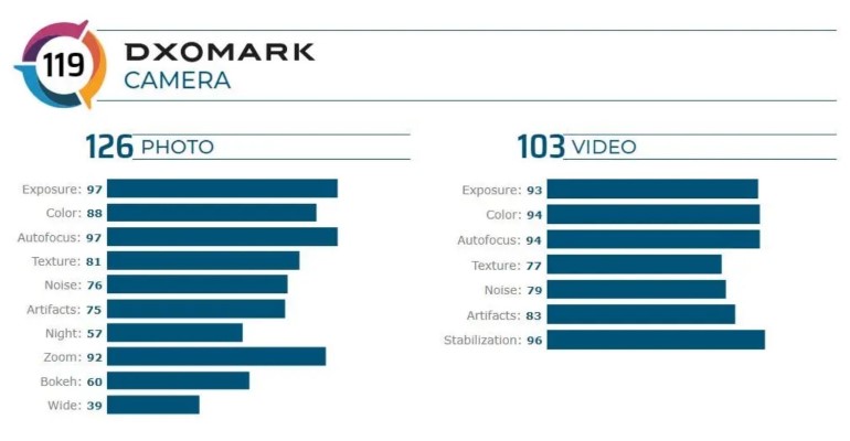 Στο βίντεο έφτασε τους 103 πόντους, το οποίο είναι υψηλότερο σκορ από το αντίστοιχο του Galaxy S20 Ultra. Σε βίντεο έρχεται στην κατάταξη πιο ψηλά, φτάνοντας στην κορυφαία πεντάδα.