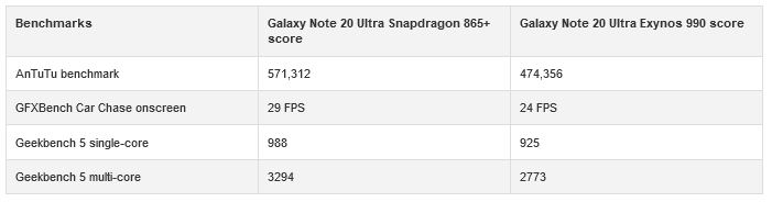 Η άλλη έκδοση, που διατίθεται και στην Ελλάδα, ενσωματώνει το Exynos 990 chipset. Παρακάτω μπορείτε να δείτε τα benchmarks που έτρεξε το PhoneArena: