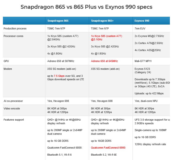 Συγκεκριμένα, το αμερικανικό/νοτιοκορεάτικο μοντέλο διαθέτει τον Snapdragon 865+, τον ταχύτερο επεξεργαστή της Qualcomm αυτήν τη στιγμή για τα Galaxy Note 20 / 20 Ultra, ο οποίος υποστηρίζει Wi-Fi 6 και Bluetooth 5.2.