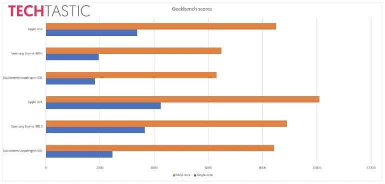 Ένα τεστ στο Geekbench έδειξε ότι η Exynos έκδοση σε single-core σκόραρε 3648 πόντους και σε multi-core 8894 πόντους. Αντίστοιχα σκορ για την Snapdragon 845 έκδοση ήταν 2378 και 8132. Πρόκειται για μια αρκετά σημαντική διαφορά.