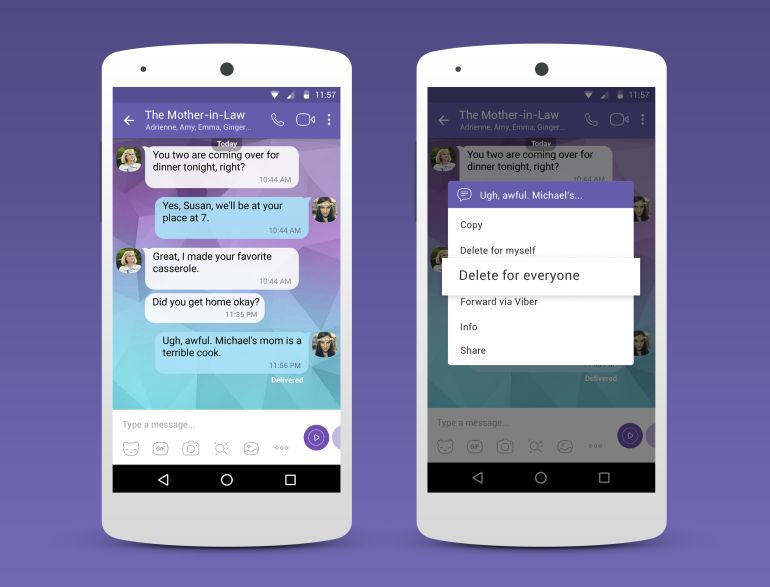 Το Viber αντιλαμβάνεται ότι ο καθένας από εμάς μπορεί να ζήσει αυτή την αμήχανη στιγμή που πατώντας το κουμπί της αποστολής συνειδητοποιούμε ότι έχουμε στείλει το μήνυμά μας σε λάθος άτομο ή ότι έχουμε χρησιμοποιήσει λάθος λεξιλόγιο! Τα τελευταία δύο χρόνια, το Viber έχει αναγνωριστεί από τους χρήστες των εφαρμογών ανταλλαγής μηνυμάτων ως το app που «συγχωρεί και ξεχνάει», οπότε δεν χρειάζεται να ανησυχείτε αν στείλετε κατά λάθος π.χ. στον εργοδότη σαςμια φωτογραφία ή ένα μήνυμα μη επαγγελματικό.