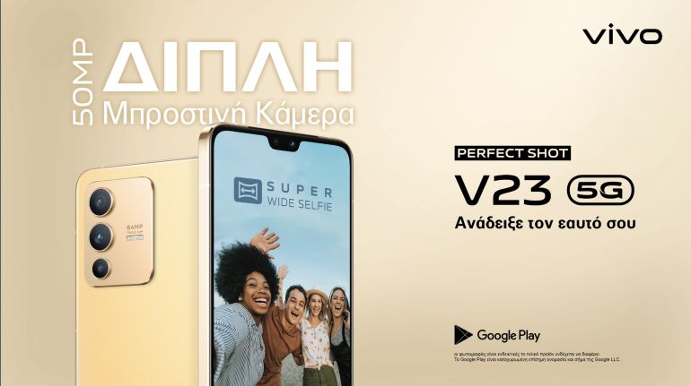 H vivo λανσάρει στην Ελλάδα το νέο smartphone V23 5G και θέτει νέα πρότυπα σε ότι αφορά στο συνδυασμό προηγμένης τεχνολογίας κάμερας και μοναδικής σχεδίασης, με πλάτη που αλλάζει χρώμα και διακρίνεται για την εξαιρετική αίσθηση που προσφέρει.