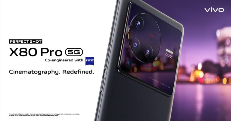 Η vivo παρουσιάζει επίσημα στην Ελλάδα το X80 Pro 5G, ένα smartphone ορόσημο καθώς παρέχει στους χρήστες πρωτοποριακή, κορυφαίου επιπέδου Φωτογραφική εμπειρία με νέα κινηματογραφικά χαρακτηριστικά που έχουν σχεδιαστεί σε συνεργασία με την κορυφαία εταιρεία ZEISS.