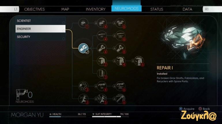 Ο χαρακτήρας σας, ο/η Morgan Yu (μπορείτε να επιλέξετε από την αρχή του παιχνιδιού αν θέλετε άνδρα ή γυναίκα για πρωταγωνιστή/-ρια) μπορεί να χρησιμοποιεί υλικά είτε εξωγήινης, είτε γήινης φύσης, ώστε να βελτιώσει τις ικανότητές του και να καταφέρει να επιβιώσει στον Talos I. Στο demo, είχαμε την ευκαιρία να δοκιμάσουμε διάφορα χαρακτηριστικά από τα παραπάνω και να πάρουμε μια καλή εικόνα για το στυλ του τίτλου. Παρακάτω παρουσιάζουμε πέντε πράγματα που ξεχωρίσαμε.