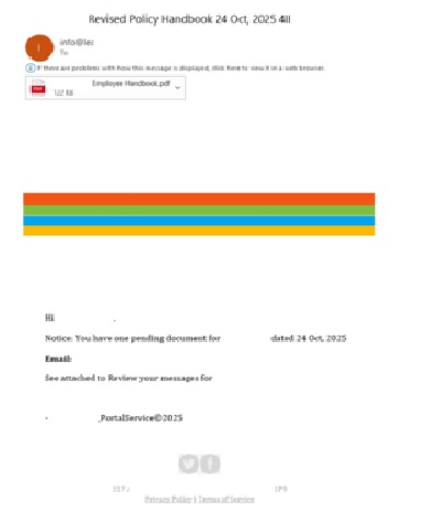 - Ψεύτικες ειδοποιήσεις από τμήματα ανθρώπινου δυναμικού, οι οποίες προτρέπουν τους εργαζομένους να ελέγξουν ή να υπογράψουν έγγραφα, όπως προγράμματα αδειών ή ακόμη και να δουν λίστες απολυμένου προσωπικού, καταλήγοντας τελικά σε ιστοσελίδες υποκλοπής διαπιστευτηρίων.