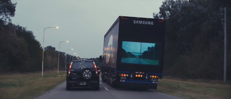 Συνήθως, βγαίνουμε δειλά-δειλά στην διαχωριστική γραμμή μήπως καταφέρουμε να ρίξουμε μια κλεφτή ματιά στην λωρίδα αντίθετης κατεύθυνσης και αν δούμε κάποιο όχημα, τότε γρήγορα επιστρέφουμε πάλι πίσω από την νταλίκα, ενώ αν ο δρόμος είναι ελεύθερος επιταχύνουμε όσο πιο πολύ επιτρέπει το αυτοκίνητο, πραγματοποιώντας την επικίνδυνη προσπέραση. Η Samsung έχοντας εντοπίσει αυτό το πρόβλημα, δημιούργησε τα λεγόμενα «Safety Truck», κατά το ελληνικότερο «Ασφαλή Φορτηγά», τα οποία είναι θα λέγαμε διαφανή. Όχι επακριβώς διαφανή, αλλά με έξυπνο τρόπο φανερώνουν τον δρόμο μπροστά από το μεγάλο όχημα στο αυτοκίνητο που ακολουθεί.