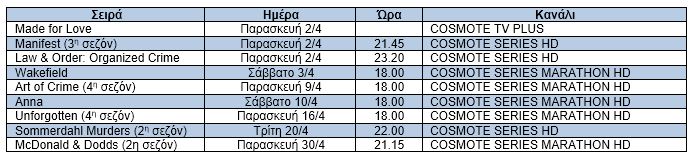 Ο Απρίλιος έρχεται με πολυσυζητημένες νέες παραγωγές και νέους κύκλους επεισοδίων δημοφιλών σειρών, σε Α΄ προβολή στην COSMOTE TV, αμέσως μετά την πρεμιέρα τους στο εξωτερικό.