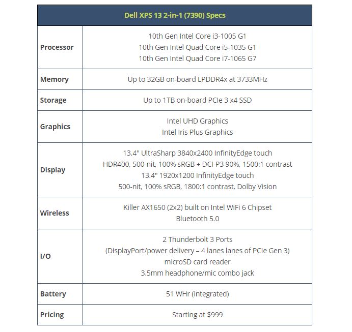 Το νέο XPS 13 2-in-1 είναι έως και 2,5 φορές ταχύτερο σε σχέση με την προηγούμενη γενιά και πρόκειται για το πρώτο laptop της DELL με τον νέο επεξεργαστή 10ης γενιάς της Intel (Ice Lake) με Gen11 graphics. Το σύστημα ενεργής ψύξης βοήθησε σε αυτήν τη μετάβαση και θα προσφέρονται επιλογές έως και τον 4-πύρηνο Intel Core i7-1065 G7.