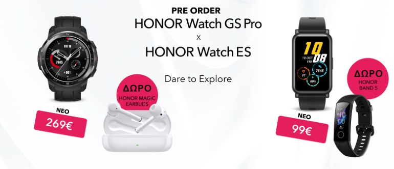 Μέχρι 22 Οκτωβρίου θα είναι διαθέσιμα για προπαραγγελία το HONOR Watch GS Pro και το HONOR Watch ES, τα δύο νέα smartwatches της HONOR που θα έρχονται στην Ελληνική Αγορά τέλη Οκτωβρίου.