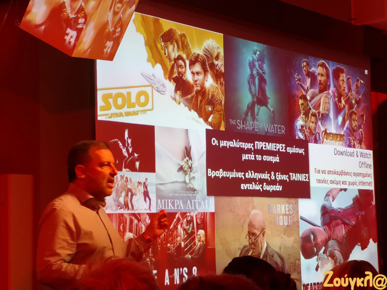«Ήρθε το τέλος του zapping», ανέφερε ο κ. Μπρουμίδης, παρουσιάζοντας το δωρεάν και on demand τεράστιο περιεχόμενο της πλατφόρμας, ενώ παράλληλα ανακοίνωσε και τη δυνατότητα εγγραφής του προγράμματος, χωρίς την ανάγκη σκληρού δίσκου, έως και 7 ημέρες πριν. Το πρόγραμμα που θα εγγράψετε ανεβαίνει στο cloud, έτσι ώστε ο χρήστης να μπορεί να δει την εγγραφή από οποιαδήποτε συσκευή άμεσα.