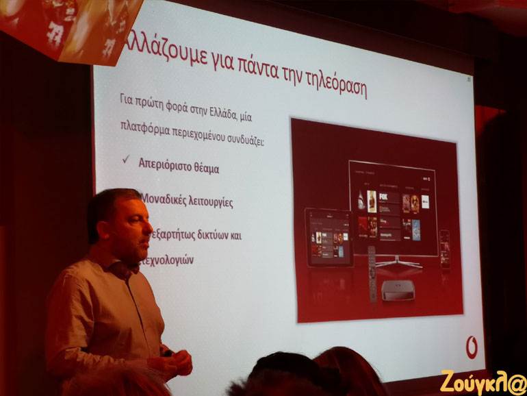 «Η Vodafone αλλάζει για πάντα την τηλεόραση στην Ελλάδα με μια σύγχρονη υπηρεσία περιεχομένου για να απολαμβάνει κανείς ό,τι θέλει, όποτε θέλει,όπου κι αν βρίσκεται.