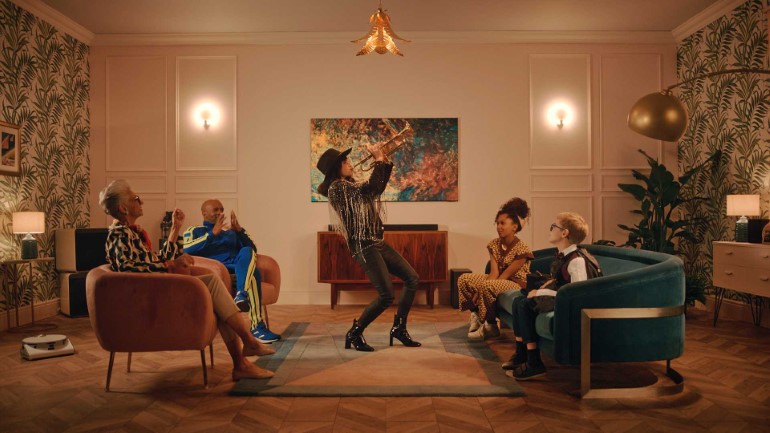 Η μαμά απολαμβάνει τις αγαπημένες της μουσικές στιγμές στο δικό της dance party με τη ρεαλιστική εικόνα της τηλεόρασης Neo QLED TV και το Q950 Soundbar, που συμπληρώνει τις άλλες συναρπαστικές τηλεοράσεις QLED της Samsung στο «house of surprises»: τη The Frame με τα μοναδικά προσαρμόσιμα πλαίσια και τη The Serif. Προσκαλεί και μερικούς από τους φίλους της να διασκεδάσουν μαζί της χάρη στο Google Duo που είναι διαθέσιμο στο Galaxy Z Flip3 της.
