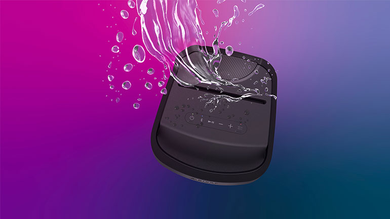 Προετοιμάστε το πάρτι στον κήπο σας για κάθε περίσταση. Τα ηχεία XP700 και XP500 είναι αδιάβροχα με βαθμό προστασίας IPX4 . Συνεχίστε το πάρτι σας άφοβα ακόμα κι αν πέσουν μερικές σταγόνες βροχής.