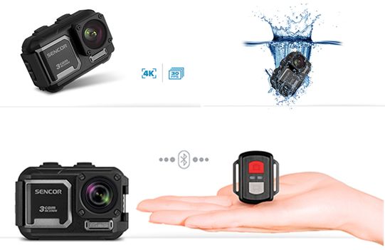 Η Αction Camera 3CAM 4K20WR της SENCOR σε ακολουθεί σε νερό, στεριά και αέρα ενώ παράλληλα μπορείς να έχεις τον απόλυτο έλεγχό της από το ασύρματο τηλεχειριστήριο ή από το smartphone σου μέσω του συμβατού app σε iOS και Android. Μπορείς να τη χρησιμοποιήσεις σε όλες τις δραστηριότητες σε νερό ή υπό δυσμενείς καιρικές συνθήκες καθώς είναι αδιάβροχη σε βάθος έως και 30 μέτρα χωρίς να χρειάζεται να χρησιμοποιηθεί ειδική αδιάβροχη θήκη. Με εγγραφή video 4K σε 30fps με αισθητήρα CMOS SONY και φακό 6 επιπέδων μπορεί να σε ακολουθήσει σε κάθε σου περιπέτεια. Στην οθόνη 2’’ μπορείς να βλέπεις σε πραγματικό χρόνο ή να αναπαράγεις τις αγαπημένες σου φωτογραφίες ή video που τράβηξες. Είναι εξοπλισμένη με δυνατότητα λειτουργίες Slow Motion και Time Lapse για να κάνεις τις δημιουργικές σου ιδέες, πράξεις.