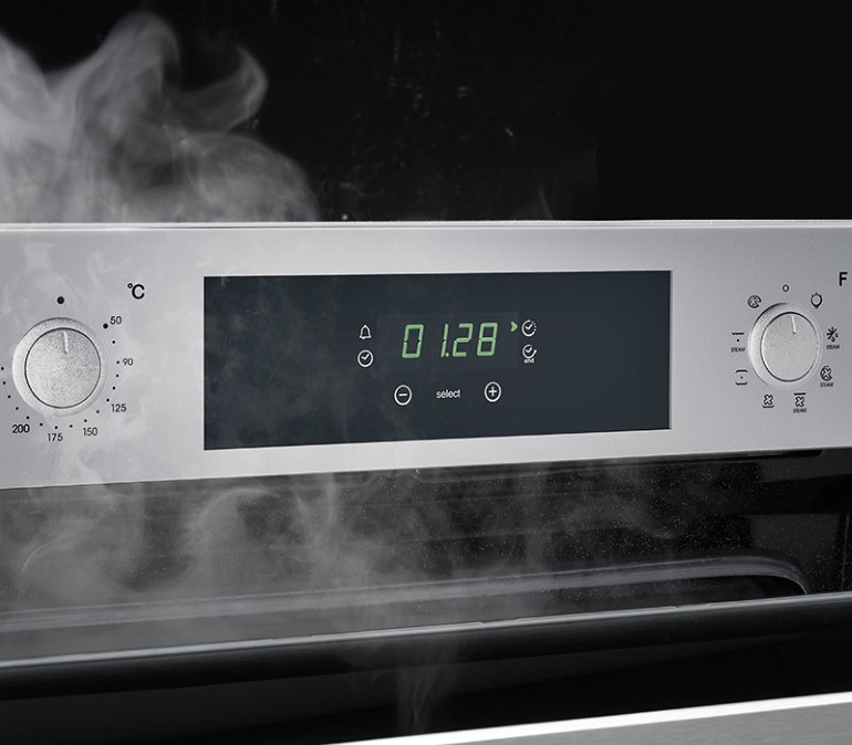 Οι νέοι φούρνοι Smart Steam με υποβοήθηση ατμού της Candy είναι ότι πιο απλό στη λειτουργία τους. Απλώς ρίχνουμε λίγο νερό (300 ml) στην ειδικά σχεδιασμένη κοιλότητα του φούρνου, διαλέγουμε το πρόγραμμα μαγειρέματος με ατμό που θέλουμε και πατάμε το κουμπί «Steam».