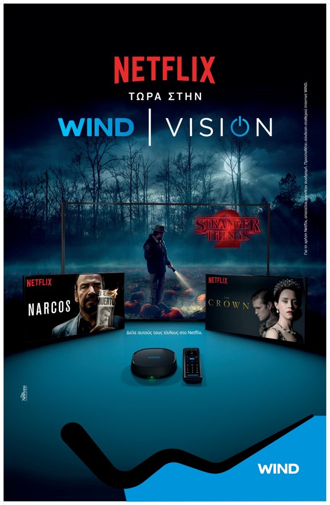 Τrue crime, επιστημονική φαντασία, περιπέτεια, δράμα, με συνδρομή στην WIND VISION και το Netflix οι επιλογές είναι αμέτρητες.Εκτός από πρόσβαση σε έναν μοναδικό κόσμο σειρών και ταινιών μέσω του Netflix, οι συνδρομητές WIND VISION, έχουν πρόσβαση σε περισσότερα από 60 συνδρομητικά κανάλια αλλά και σε ατέλειωτο περιεχόμενο μέσω των εφαρμογών του Google Play Store.