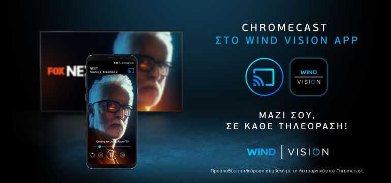 Δυόμισι σχεδόν χρόνια μετά τη δυναμική είσοδο της WIND στην αγορά της συνδρομητικής τηλεόρασης, η τηλεοπτική υπηρεσία WIND VISION λανσάρει και προσφέρει πρώτη στην Ελλάδα ακόμα μία μοναδική δυνατότητα. Αυτή της καινοτόμου λειτουργίας Chromecast μέσα από την εφαρμογή WIND VISION για φορητές συσκευές.