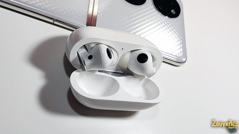 Σημαντικές διαφορές στον σχεδιασμό αρχίζουμε να βλέπουμε με το που ανοίξουμε το καπάκι της θήκης. Τα ακουστικά είναι πλέον τοποθετημένα με ελαφρώς διαφορετικό τρόπο και είναι πολύ πιο εύκολο να τα βγάλει κάποιος από τη θήκη. Παράλληλα, έχουμε ένα νέο χρώμα διαθέσιμο στη θέση του μαύρου, το οποίο είναι το Silver Blue, που είναι πολύ ενδιαφέρον. Στη διάθεσή μας έχουμε το λευκό, το οποίο ονομάζεται Ceramic White και μοιάζει πολύ με τις σκληρές πλαστικές επιφάνειες που βρίσκουμε σε ένα πιάνο, ενισχύοντας έτσι την premium φύση του συγκεκριμένου μοντέλου.