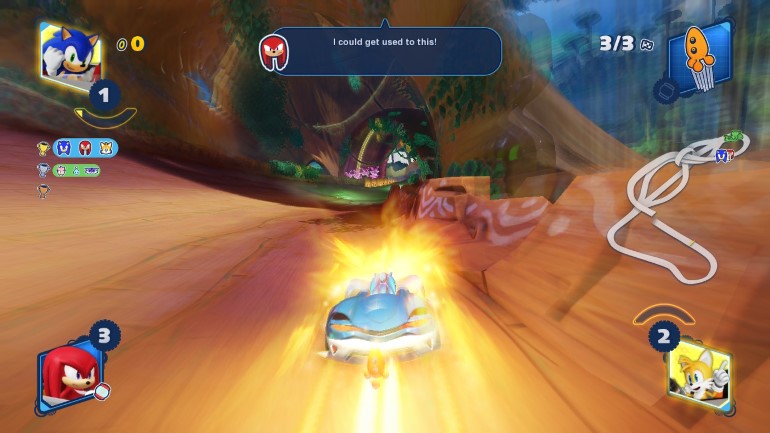 Υπάρχει μάλιστα και ένα υποτυπώδες σενάριο για να ντύσει το «Story Mode» του Team Racing. Μη φανταστείτε κάτι το εξαιρετικά βαθύ ή ενδιαφέρον, παρά μόνον κάτι που θα «ντύσει» τη συνολική εμπειρία με γνώριμους χαρακτήρες από το σύμπαν του Sonic, προσθέτοντας κάποιο… σασπένς μεταξύ των αλλεπάλληλων αγώνων.