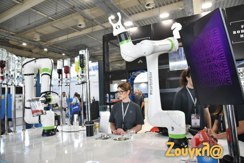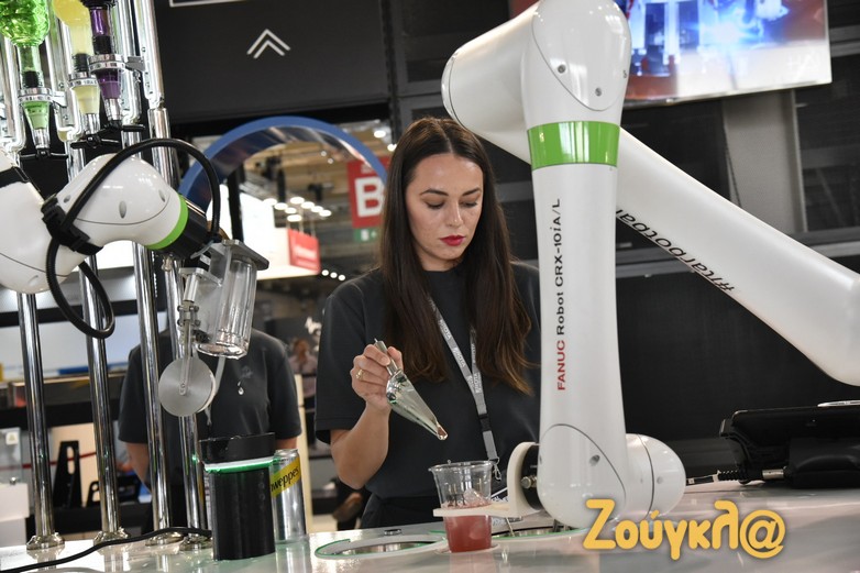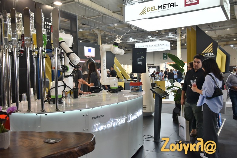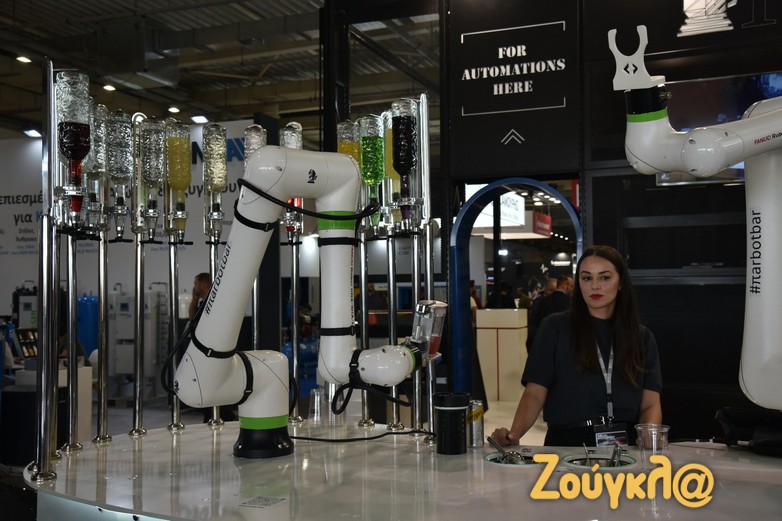 «Εδώ στην έκθεση “Metal Machinery” στο Metropolitan Expo, με τον οικογενειακό όμιλο εταιρειών HDI Holdings, έχουμε αναπτύξει ένα ρομποτικό cocktail bar το οποίο έχει κλέψει τα βλέμματα και των επισκεπτών και των εκθετών. Πρόκειται για ένα μπαρ το οποίο μπορεί να είναι πλήρως λειτουργικό για ένα εστιατόριο και ένα καφέ – μπαρ. Είναι ακόμη μια καινοτομία για τη βιομηχανία και την παραγωγή που έχει αναπτύξει η εταιρεία μας HDI Holdings.