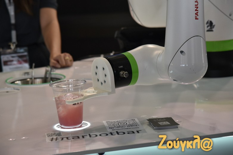 Τα βλέμματα όλων των επισκεπτών, αλλά και των εκθετών, έχει κλέψει το ρομποτικό μπαρ που φτιάχνει κοκτέιλ στην έκθεση «Metal Machinery», στο εκθεσιακό κέντρο Metropolitan Expo. Ο κόσμος που θα επισκεφτεί την έκθεση έως και την Κυριακή 22 Οκτωβρίου θα έχει την ευκαιρία να δει από κοντά τις ικανότητες του ρομπότ – μπάρμαν και να απολαύσει τις δημιουργίες του.