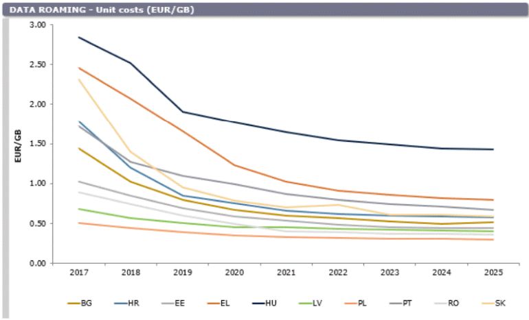 Συγκεκριμένα, σχετικά με το κόστος ανάπτυξης δικτύου η Tarifica αναφέρει ότι τα κόστη ανάπτυξης δικτύων κινητών επικοινωνιών διαφέρουν μεταξύ χωρών. Στην Ελλάδα υπάρχουν 170 κατοικημένα νησιά και η εξασφάλιση της συνδεσιμότητας τους παρουσιάζει σημαντικές προκλήσεις με τα κόστη ανάπτυξης και συντήρησης των δικτύων να αποτελούν μία από τις πιο σημαντικές. Η Tarifica προτείνει τη διερεύνηση του κόστους ανάπτυξης δικτύου και τη συσχέτιση του με τις τιμές λιανικής υπηρεσιών κινητών επικοινωνιών. Η Tarifica αναφέρεται σε μελέτη της Ευρωπαϊκής Επιτροπής, στο πλαίσιο της περιαγωγής, για τα κόστη δικτύων κινητών επικοινωνιών από την οποία προκύπτει ότι το κόστος δικτύου ανά GByte για την Ελλάδα είναι το δεύτερο μεγαλύτερο μεταξύ των χωρών που συμπεριλαμβάνονται στην ανάλυση της όπως φαίνεται στο παρακάτω διάγραμμα.