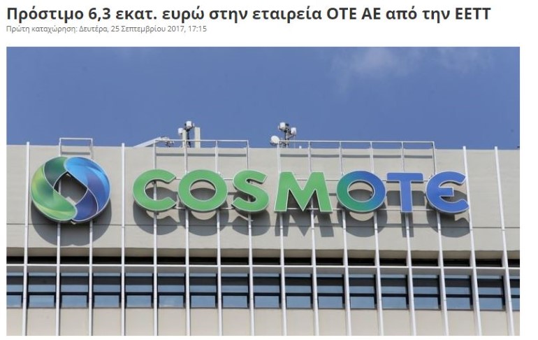 Σημειώνεται, επίσης, ότι η ΕΕΤΤ έσπευσε να εκδώσει ανακοίνωση για την επιβολή προστίμου ενώ επέδιδε το 103 σελίδων κείμενο της Απόφασης στον ΟΤΕ.