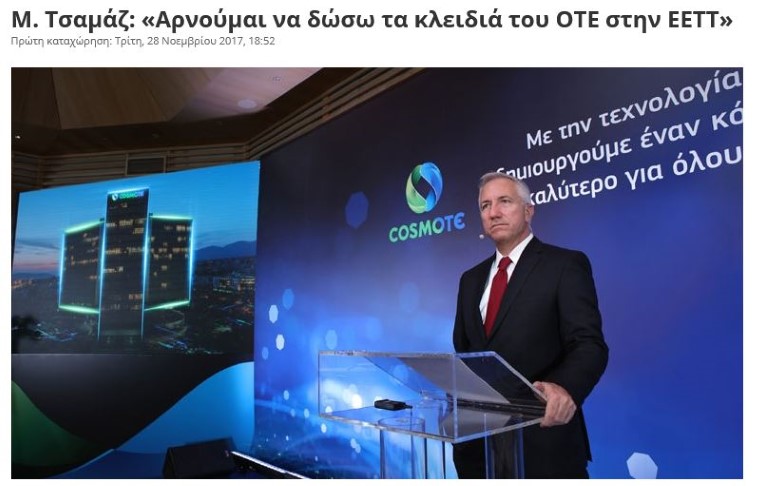 Ακολουθεί η ανακοίνωση της ΕΕΤΤ σχετικά με τις χθεσινές δηλώσεις σε συνέντευξη Τύπου του Διευθύνοντα Συμβούλου του Ομίλου ΟΤΕ, Μιχάλη Τσαμάζ: